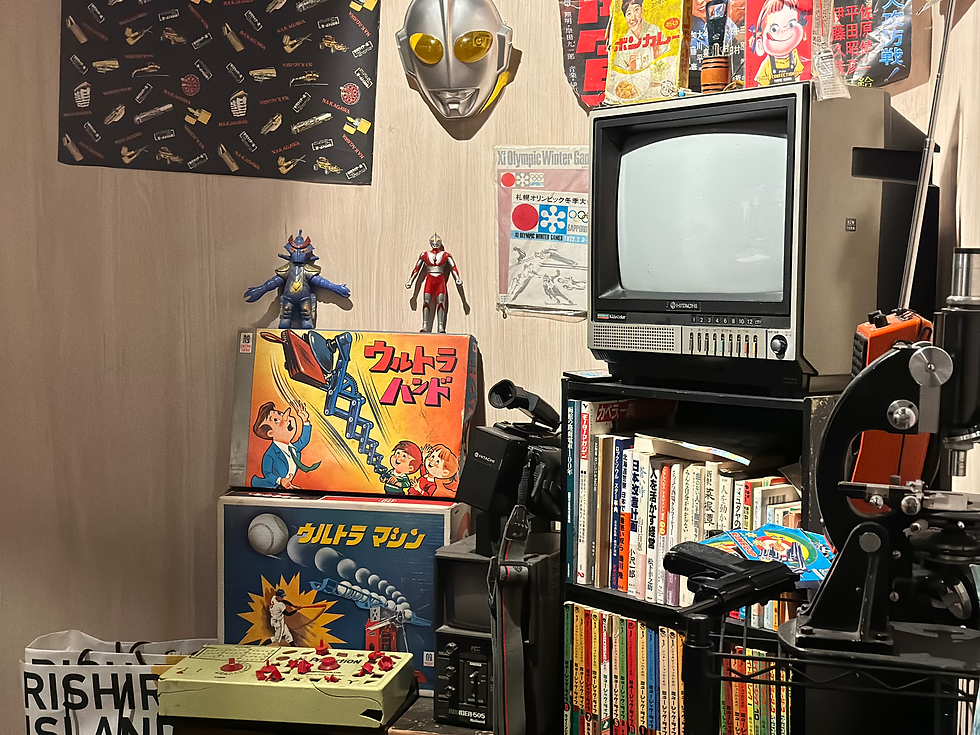 商店内部装饰着唱片和复古玩具,感觉像是一个秘密基地。